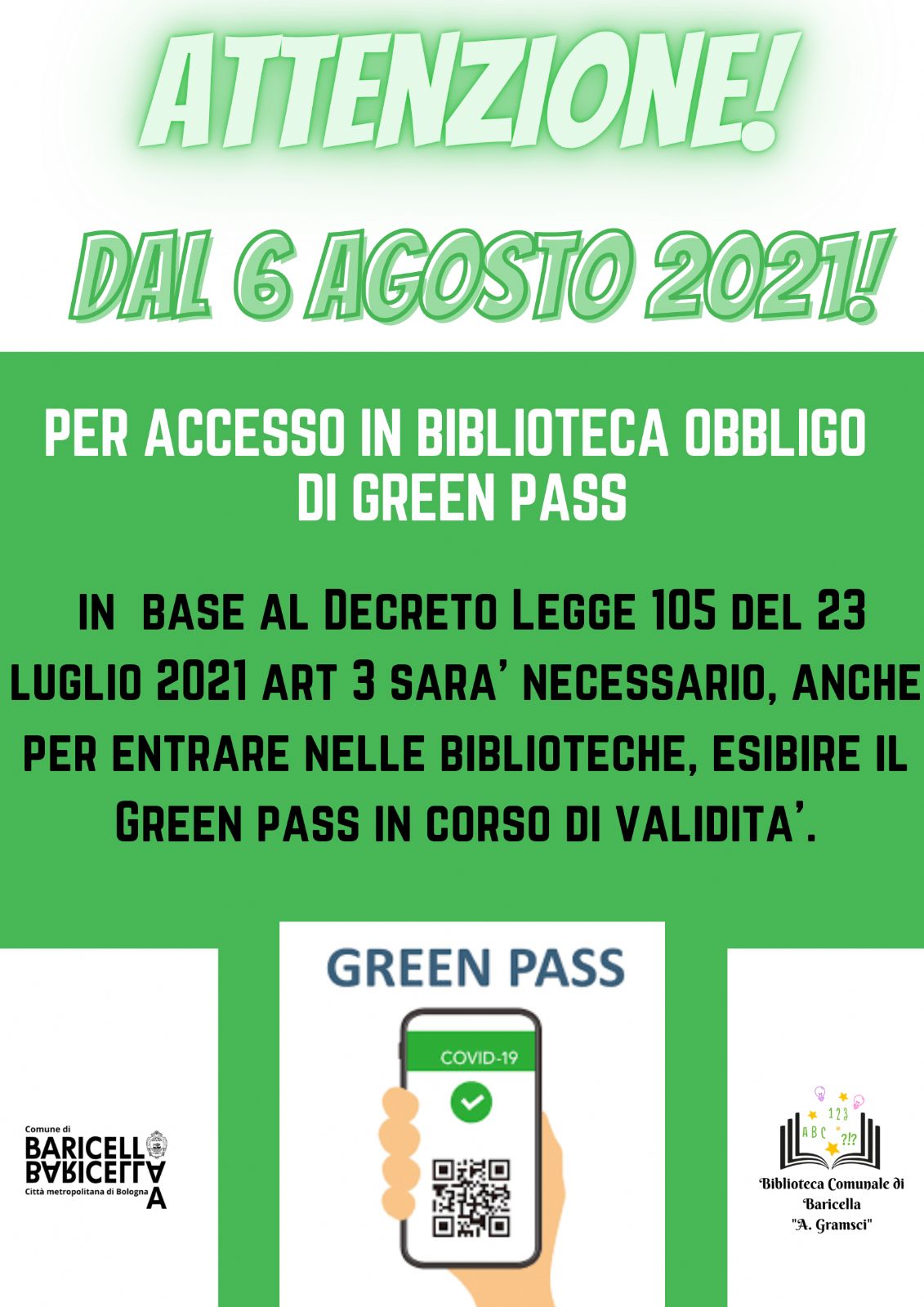 Green Pass Per Entrare In Biblioteca Comune Di Baricella